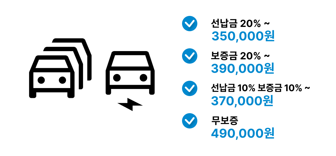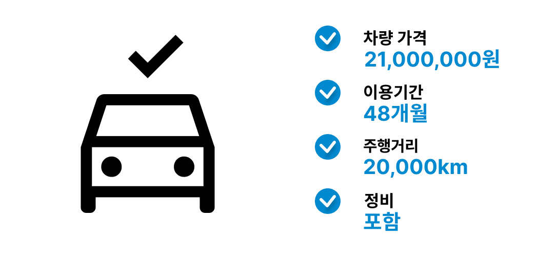* 연간 주행거리 10,000km / 이용기간 60개월 / 보험연령 26세 이상 / 정비 미 포함 / 선수금 30% 기준